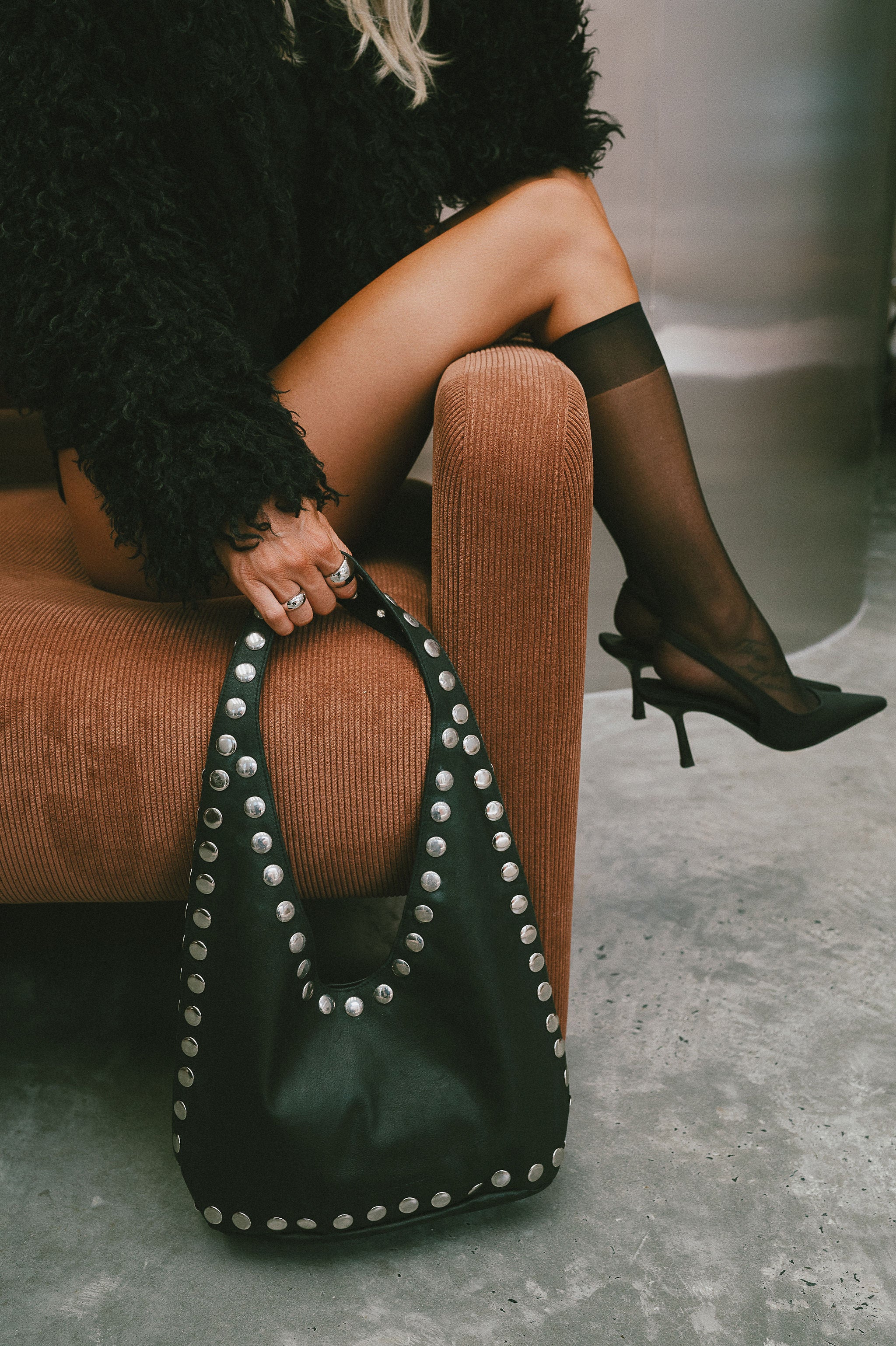 The Kate Studded Slouch Bag In Black