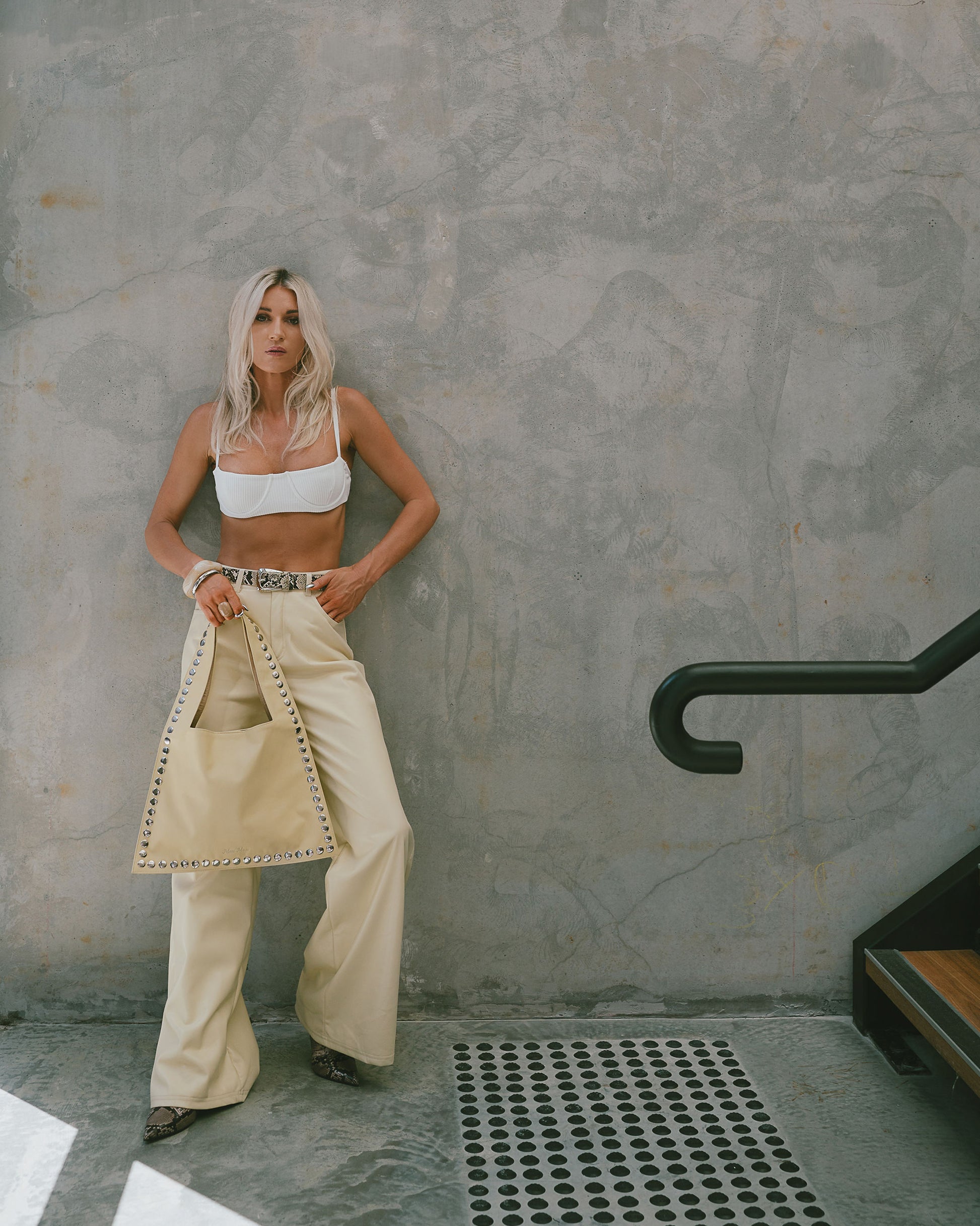 The Bridgette Studded Tote in Butter is a refined statement piece designed to elevate your everyday. Crafted from 100% leather in a warm butter yellow tone, it pairs quiet luxury with bold edge. The smooth, supple finish is contrasted by oversized silver rivets, creating a striking silhouette that feels both timeless and directional.
